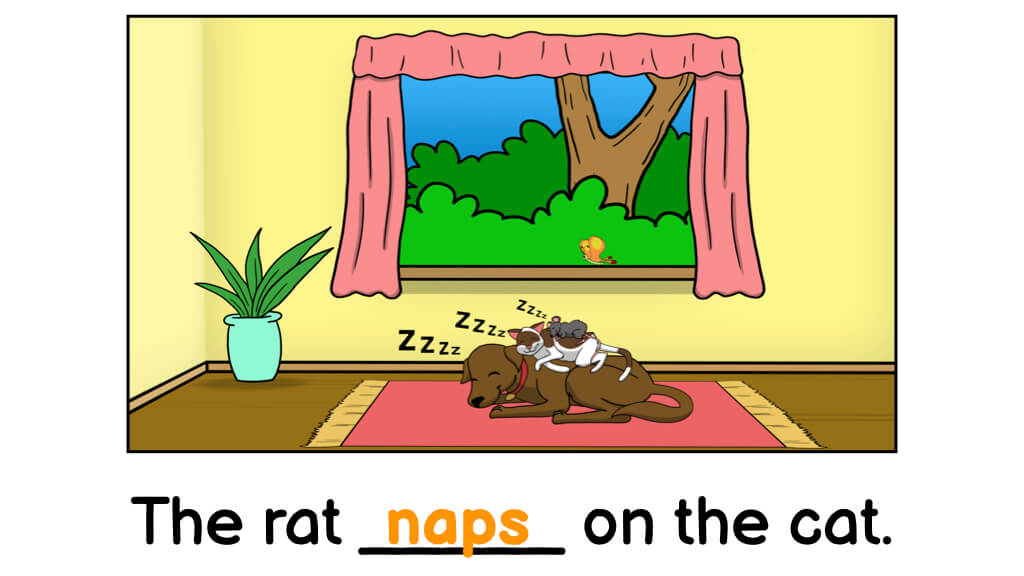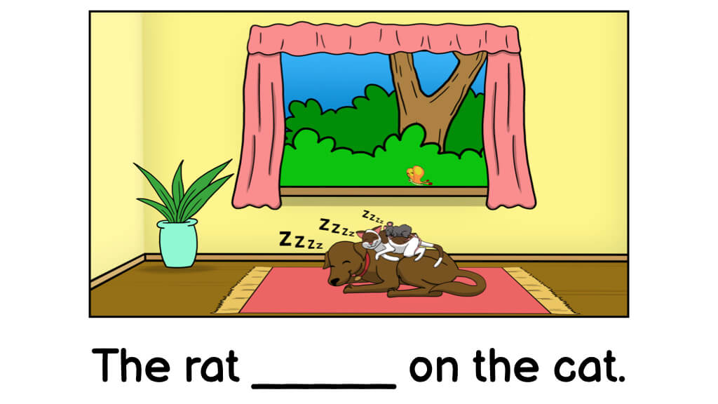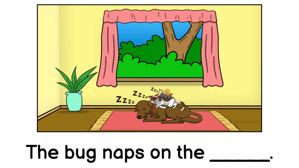The completed sentence has to match the picture. Readers can also read the completed sentence on their own.
